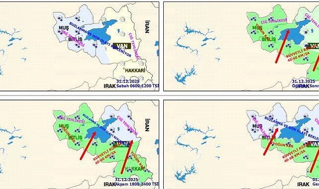 Meteoroloji 14. Bölge Müdürlüğünden alınan bilgilere göre, yapılan son değerlendirmede bölge genelinde havanın çok bulutlu, sabah saatlerinden itibaren Muş ve Bitlis çevrelerinde, öğle saatlerinden itibaren ise Van ve Hakkari çevrelerinde aralıklı kar yağışlı olacağı belirtildi. Yağışların öğle saatlerinden sonra yer yer kuvvetli ve yoğun kar şeklinde etkisini artıracağı dile getirilen açıklamada, "Hava sıcaklıklarının mevsim normalleri civarında seyredeceği tahmin edilmektedir. Rüzgarın güneyli ve batılı yönlerden orta kuvvette, öğle saatlerinden itibaren zaman zaman kuvvetli rüzgar (40-60 km/sa) şeklinde esmesi beklenmektedir. Sabah ve gece saatlerinde buzlanma ve don olayı ile yer yer sis ve pus hadisesi beklendiğinden yaşanabilecek olumsuzluklara (ulaşımda aksamalar, görüş mesafesinde daralma vb.) karşı dikkatli ve tedbirli olunması gerekmektedir. Sabah saatlerinde başlaması beklenen yağışların öğle saatlerinden itibaren etkisini arttırarak Muş, Bitlis ve Hakkari çevreleri ile Van'ın güney (Edremit, Bahçesaray, Çatak, Gevaş, Gürpınar ve Başkale) ilçelerinde aralıklarla kuvvetli ve yer yer yoğun kar yağışlı olacağı tahmin edilmektedir. Yaşanabilecek olumsuzluklara karşı dikkatli ve tedbirli olunmalıdır. Bölgemizde yüksek kar örtüsü bulunan dik yamaçlarda çığ tehlikesi bulunduğundan yaşanabilecek olumsuzluklara karşı dikkatli ve tedbirli olunması gerekmektedir. Öğle saatlerinden itibaren bölgemiz genelinde rüzgarın güneyli yönlerden kuvvetli (40-60 km/sa), yüksek kesimlerde fırtına (60-80 km/sa) şeklinde esmesi beklendiğinden yaşanabilecek olumsuzluklara karşı dikkatli ve tedbirli olunmalıdır" denildi.