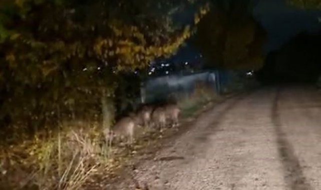 Bolu'da aç kalan domuz sürüsü şehir merkezine yakın bir bölgede kara yoluna indi. Yiyecek arayan domuzlar, vatandaş kamerasına yansıdı.