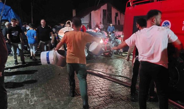 Bolu'nun Mudurnu ilçesine bağlı Çamyurdu köyünde gece saatlerinde 12 yapının alev alev yandığı yangını söndürmek için ekipler ve vatandaşlar seferber oldu. Taşkesti Belediye Başkanı Saim Çevik, "İtfaiyeler müdahale etmeseydi köy tamamen yanacaktı" dedi.