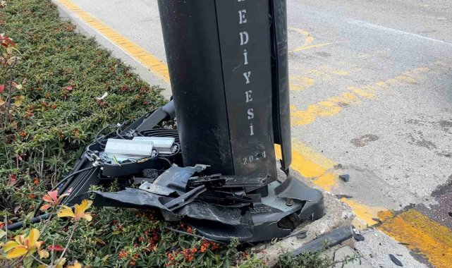 Öte yandan, yaşanan kaza anı bir iş yerinin güvenlik kamerasına saniye saniye yansıdı. Güvenlik kamerası görüntülerinde, aracın dönüş yaptığı esnada kontrolden çıkarak aydınlatma direğine çarptığı görüldü.