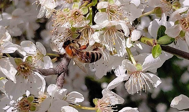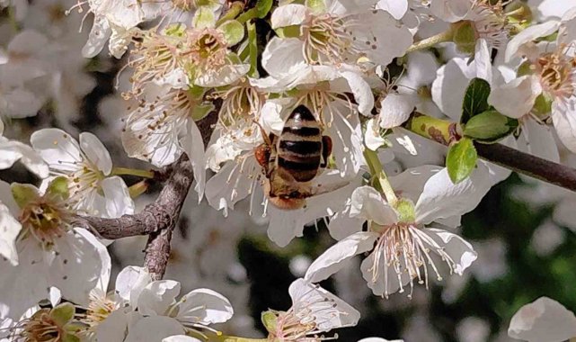 Bolu'nun Mudurnu ilçesinde havaların ani ısınmasıyla birlikte çiçekler açtı. Dört aylık kış uykusundan uyanan arılar, bal üretimi için polen toplamaya başladı.