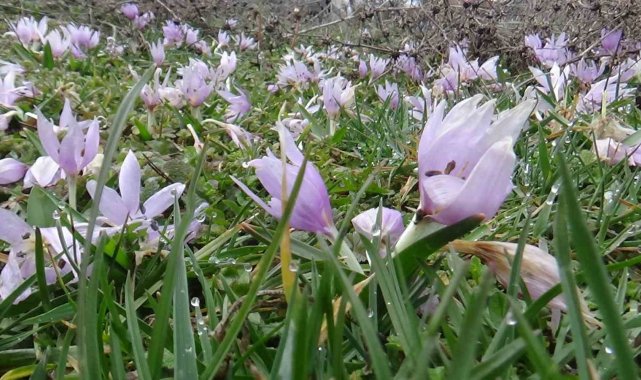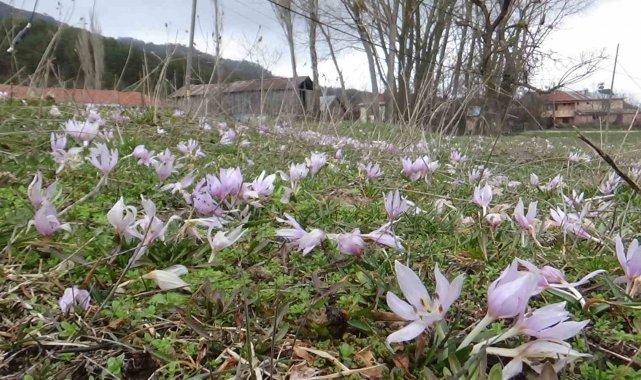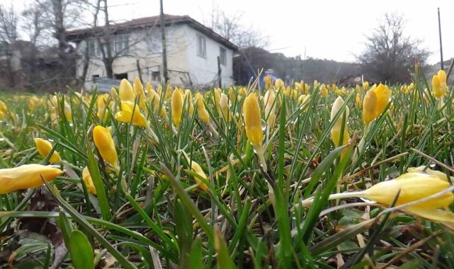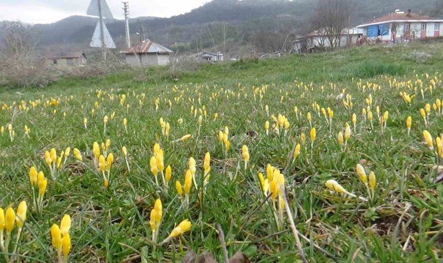 Bolu'nun Mudurnu ilçesinde kış aylarının son günlerinde baharın müjdecisi olarak bilinen çiğdemler çiçek açtı.