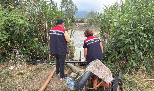 Bolu'nun Merkez ilçesine bağlı Çepni köyünde bulunan tarımsal sulama göletinde, sıcak hava ve sulama faaliyetlerine bağlı olarak yaşanan kuruma sonrası İl Tarım ve Orman Müdürlüğü ekipleri bölgede inceleme yaptı.