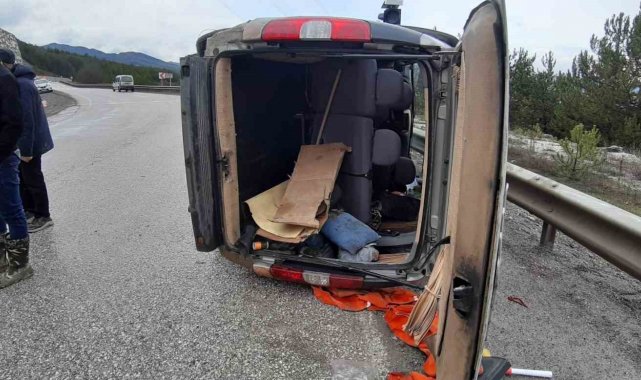 Bolu'nun Mudurnu ilçesinde cenazeden dönenlerin bulunduğu hafif ticari araç, otomobil ile çarpıştıktan sonra devrildi. Kazada hafif ticari araçta bulunan 2 kişi yaralandı.