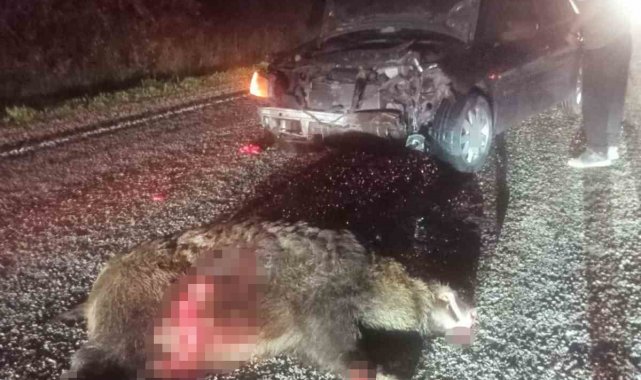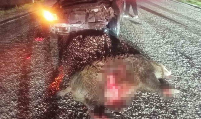 Bolu'nun Mudurnu ilçesinde aniden yola fırlayan domuza çarpan otomobilin sürücüsü yaralandı. Çarpmanın etkisiyle araç hurdaya dönerken, domuz telef oldu.
