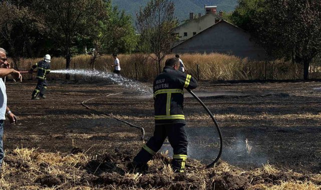 Bolu'da Vakıfgeçitveren köyünde evlerin dibinde bulunan tarım arazisinde anız yangını çıktı. İtfaiye ekipleri ve köylülerin seferber olduğu yangın, evlere sıçramadan söndürüldü.