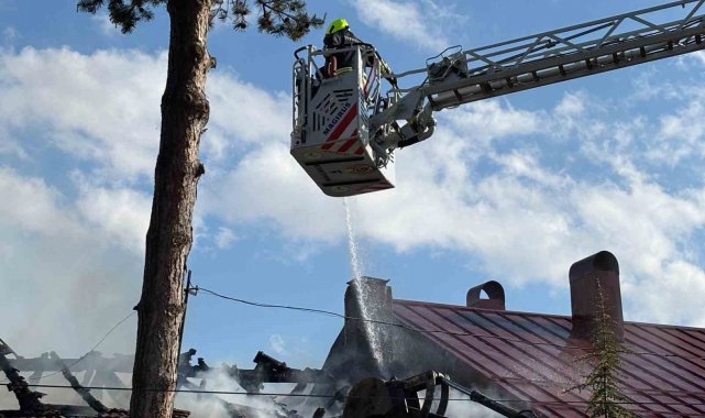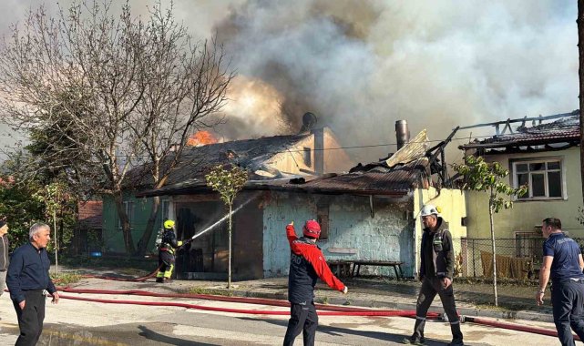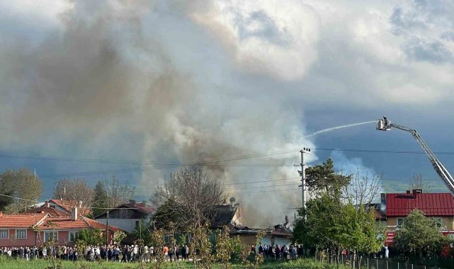 Bolu'da bir depoda çıkan yangın, depoyu ve iki evi küle çevirdi.