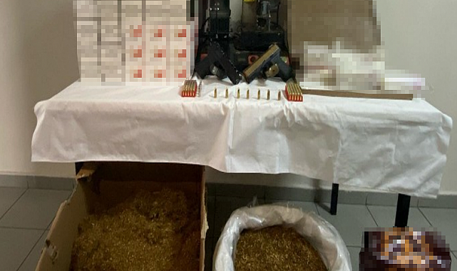 Edinilen bilgiye göre, İl Jandarma Komutanlığı'na bağlı ekipler kaçakçılığa yönelik çalışma yürüttü. Ekipler tarafından belirlenen adrese yapılan baskında, 1 adet sigara sarma makinası, 1 tabanca, 1 kurusıkı tabanca, 19 bin 200 adet boş makaron, 25,5 kilogram tütün, 105 kurusıkı tabanca mermisi, 7 adet 9 mm fişek ve 5 bin 250 adet dolu makaron bulundu.