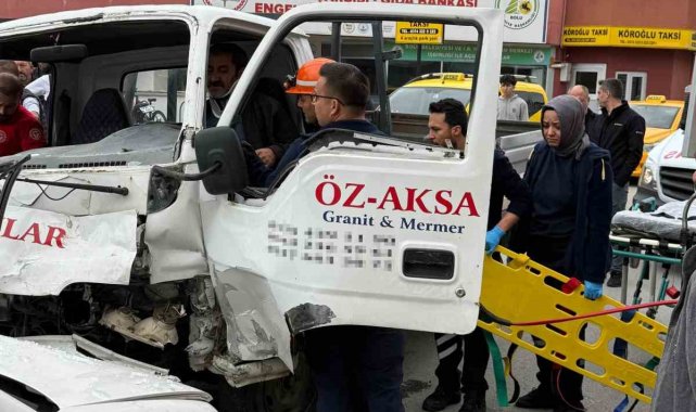 Bolu'da kafa kafaya çarpışan kamyonet ile hafif ticari araçtaki 3 kişi yaralandı