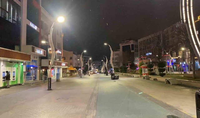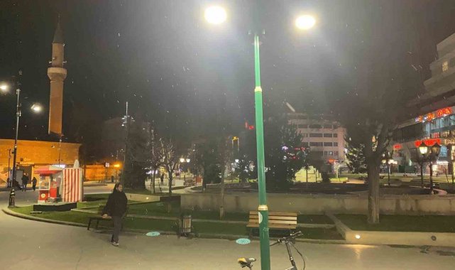 Bolu'da akşam saatlerinde kent merkezinde kar yağışı etkili oldu.