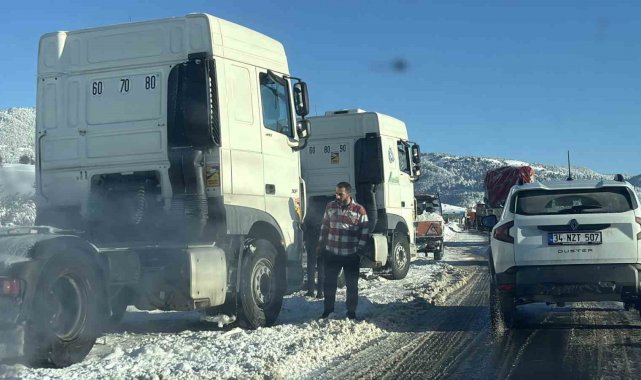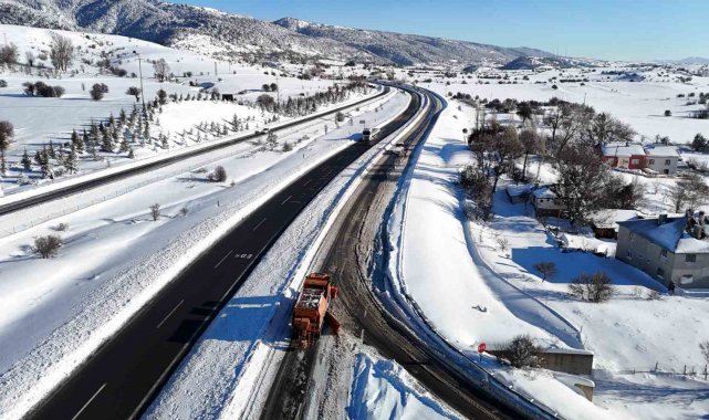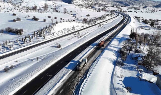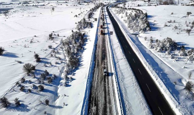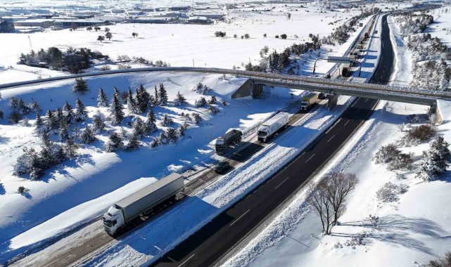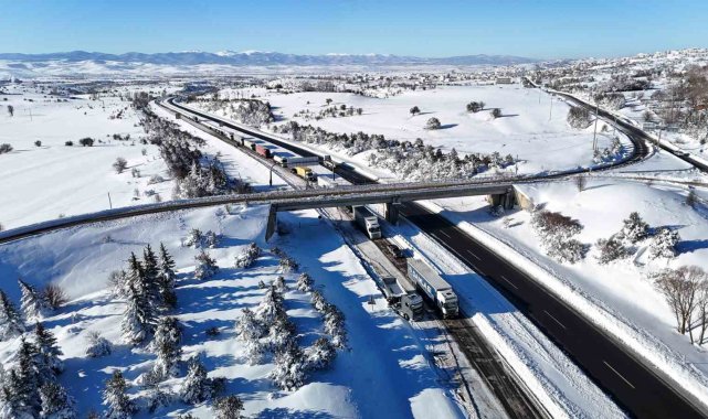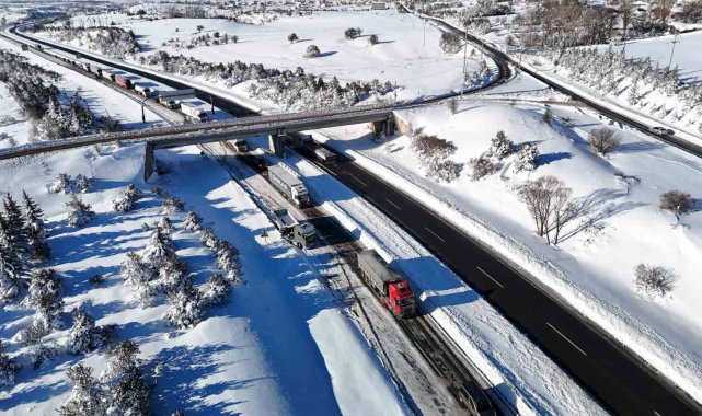 Karayolları ve trafik ekiplerinin yoğun çalışmaları neticesinde, yol sabah saat 06.00 itibarıyla kontrollü olarak trafiğe açıldı. Ekipler, güzergahta kar küreme ve tuzlama çalışmalarını sürdü. Kar kürüme çalışmalarının devam ettiği bölgede, mahsur kalan araçlar görüntülendi. Dün gece yoğun kar yağışı sebebiyle yolda mahsur kalan araçlar havadan dronla görüntülendi.