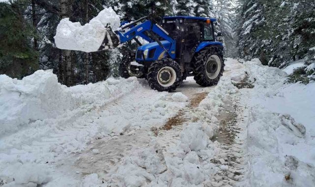 Bolu'nun yüksek kesimlerinde etkili olan kar yağışı nedeniyle ulaşıma kapanan Yazıören köyü yaylasının yolu, muhtar ve köylülerin seferber olmasıyla traktör yardımıyla açıldı.