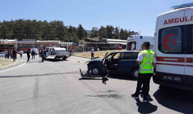 Bolu'nun Mudurnu ilçesi girişinde bulunan dönel kavşakta süt kamyonu ile otomobilin çarpışması sonucu meydana gelen trafik kazasında 2 kişi yaralandı.
