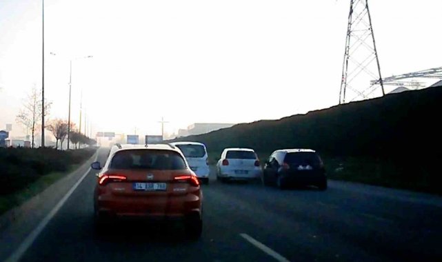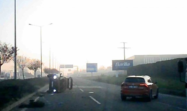 Bolu'da D-100 kara yolunda bir otomobilin devrildiği kazanın araç içi kamera görüntüsü ortaya çıktı. Devrilen otomobile makas atan başka bir otomobilin çarptığı ve sürücünün direksiyon hakimiyetini kaybederek kaza yaptığı kameraya yansıdı.