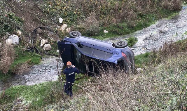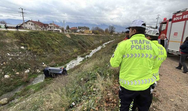 Bolu'nun Yukarısoku Mahallesi'nde kontrolden çıkan bir otomobil dereye uçtu. Meydana gelen kazada 2 kişi yaralandı.