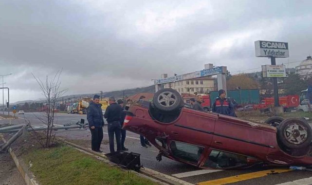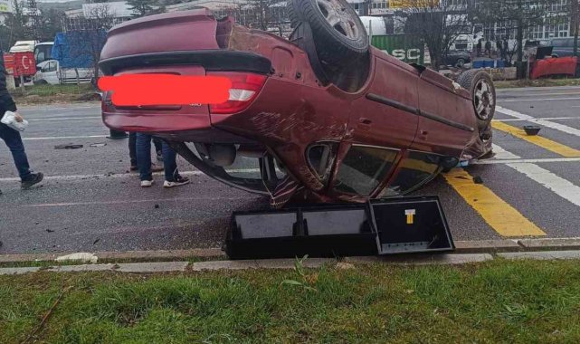 Bolu'nun Yeniçağa ilçesinde refüjdeki trafik ışığı direğine çarpan otomobilin takla attığı kazada 1 kişi yaralandı.