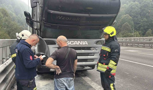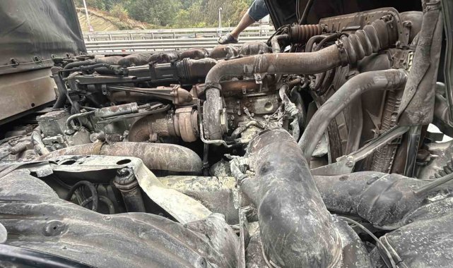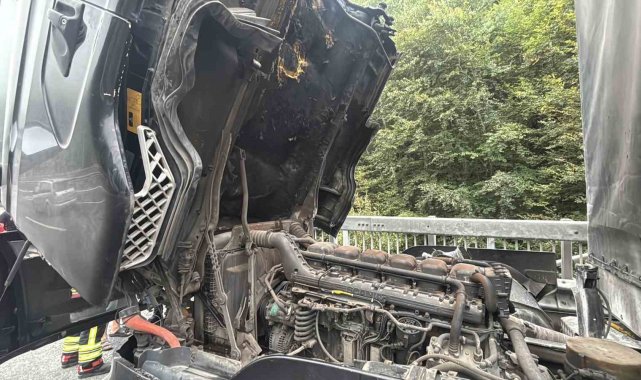TEM Otoyolu'nun Bolu Dağı Tüneli mevkiinde mobilya yüklü kamyonun motor kısmı alev aldı. Alevlere kısa sürede müdahale eden ekipler olası faciayı önledi.