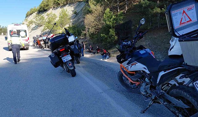 Bolu'nun Mudurnu ilçesine gezi için gelen motosiklet grubunda peş peşe yaşanan kazalarda 1'i ağır 2 kişi yaralanırken, bir köpek de telef oldu.