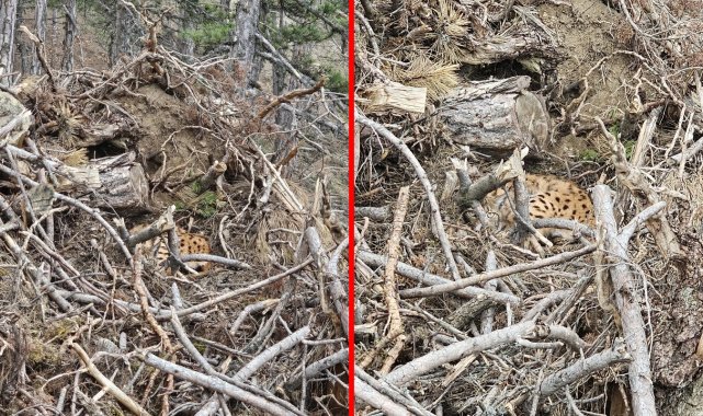 Bolu'nun Göynük ilçesinde, nesli tehdit altındaki vaşak ve yavruları kamufle oldukları ağaçların arasında görüntülendi.