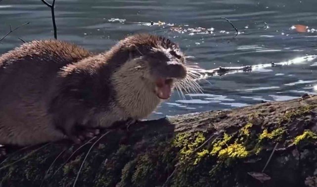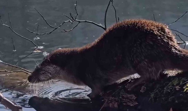 Bolu'nun doğal güzellikleriyle ünlü Yedigöller Milli Parkı'nda, nesli tükenme tehlikesi altında bulunan su samuru görüntülendi.