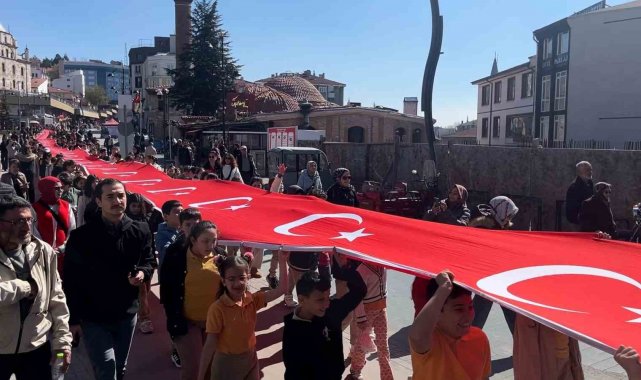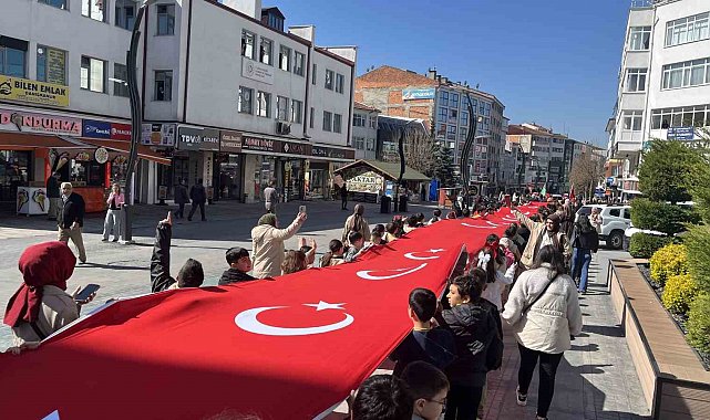 Bolu'da, okullarda yaşanan saldırılara dikkat çekmek ve 23 Nisan Ulusal Egemenlik ve Çocuk Bayramı etkinlikleri kapsamında yaklaşık 500 öğrenci 200 metrelik Türk bayrağıyla yürüyüş gerçekleştirdi.