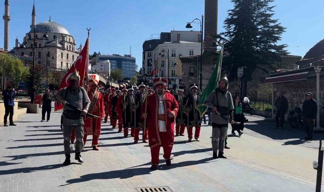 Bolu'da öğrenciler 200 metrelik Türk bayrağıyla caddede yürüdü