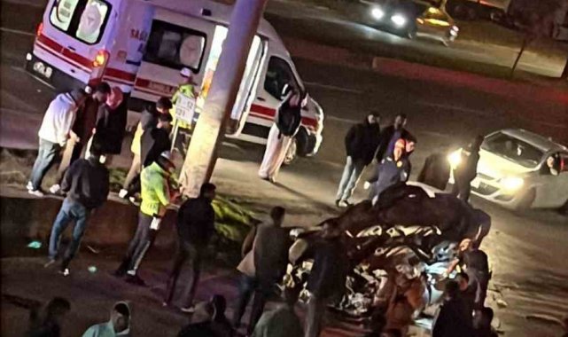 Bolu'da önce refüje ardından elektrik direğine çarpan otomobil tepetaklak oldu: 1 yaralı