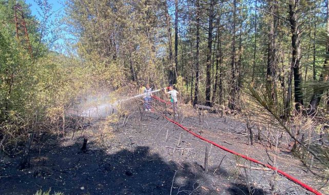 Bolu'da elektrik direğinden çıktığı belirlenen yangın ormanlık alana sıçradı. Ekiplerin uzun uğraşları sonucu kontrol altına alınan yangında, geniş bir alan zarar gördü.
