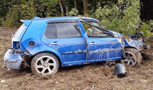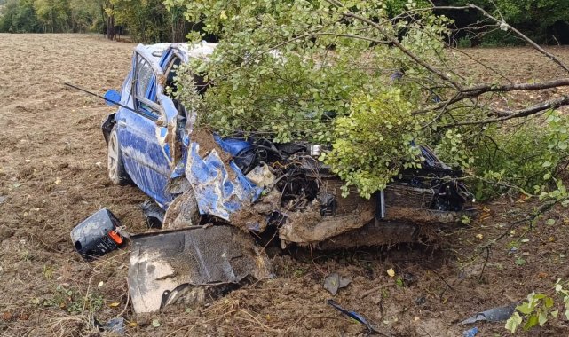 Bolu'da otomobil tarlaya uçtu, hurdaya döndü: 1 yaralı