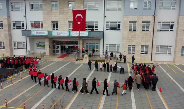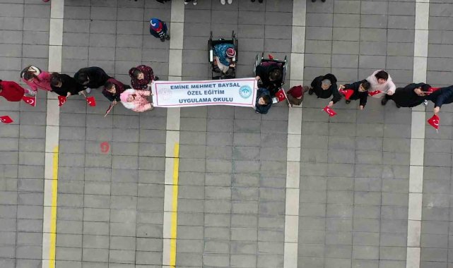 Bolu'da özel eğitim öğrencileri, öğretmenleri ve velileriyle birlikte 'Bayrak sevgisi' temalı Türk bayrağı koreografisi hazırladı.
