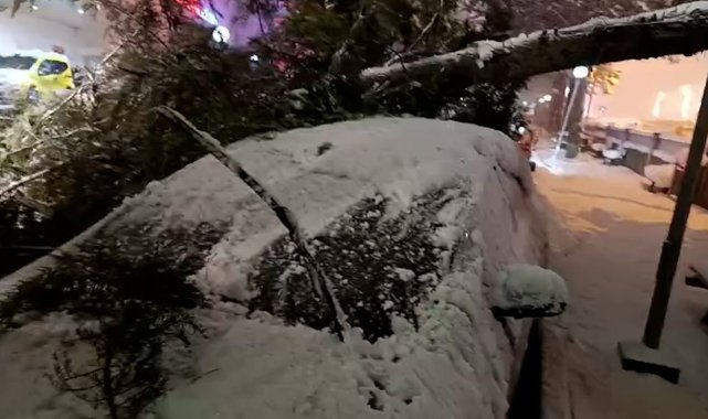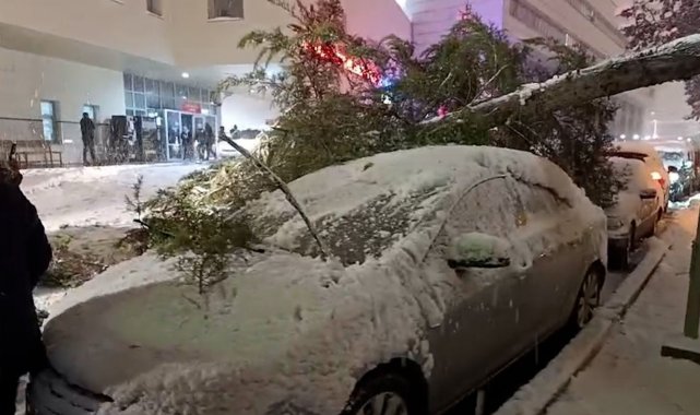 Bolu'da 2 gündür etkili olan yoğun kar yağışı nedeniyle Köroğlu Devlet Hastanesi'nin bahçesindeki ağaç, park halindeki otomobilin üzerine devrildi.