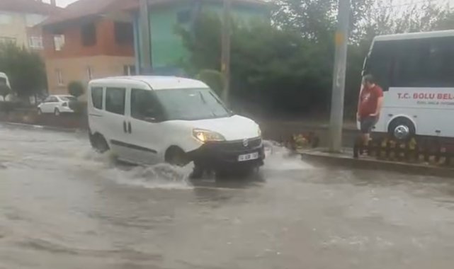 Bolu'da günlerdir etkili olan sıcak hava, yerini sağanağa bıraktı. Şehir merkezinde kısa sürede etkili olan yağış, bazı sokakları göle çevirirken, sürücüler trafikte zor anlar yaşadı.