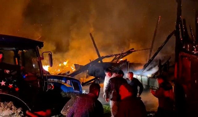 Bolu'nun Mudurnu ilçesinde yıldırım düşmesi sonucu bir samanlık ve traktör alev alev yandı.