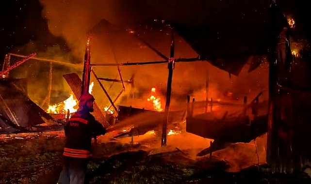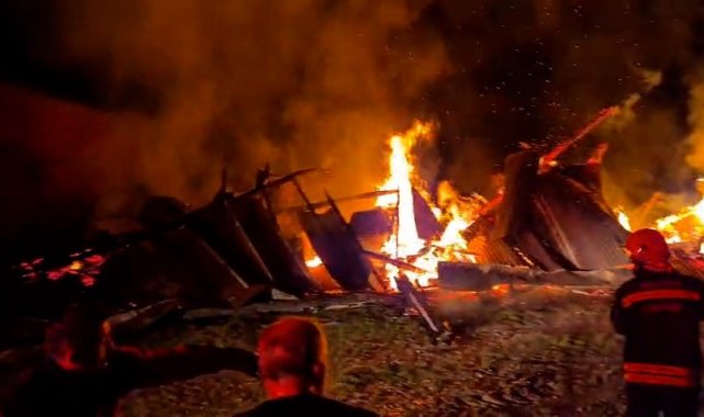 Bolu'da samanlığa yıldırım düştü: Samanlık ve traktör alev alev yandı