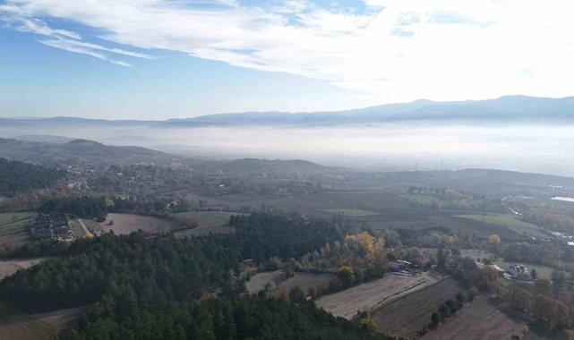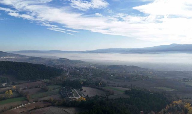 Bolu'da sabah saatlerinde etkili olan yoğun sis, şehir merkezini tamamen kaplarken, yüksek noktalardan bakıldığında bulutların üzerinde kalmış bir şehir manzarası oluştu. Havadan dron ile kaydedilen görüntülerde, sis tabakasının arasında kalan binalar ve ormanlar kartpostallık kareler oluşturdu.