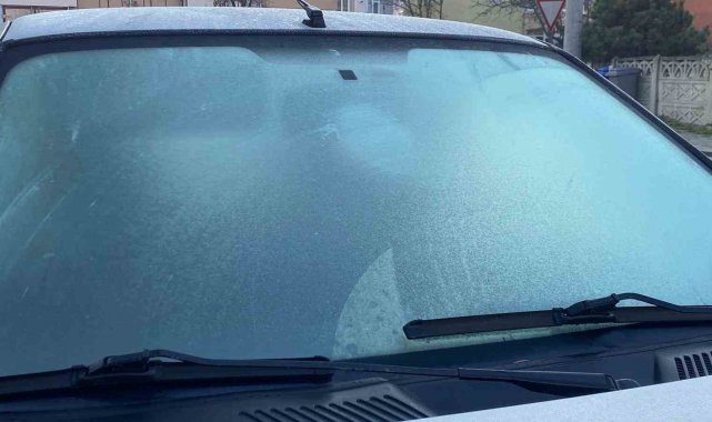 Bolu'da hava sıcaklığının sıfırın altına düşmesiyle sabah saatlerinde araçların camları buz tuttu.