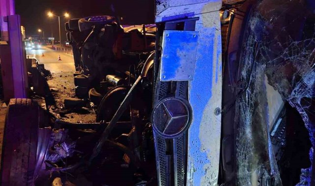 Bolu'nun Gerede ilçesinde TEM Otoyolu gişelerine çarpan tanker devrildi. Meydana gelen feci kazada sürücü yaralandı.
