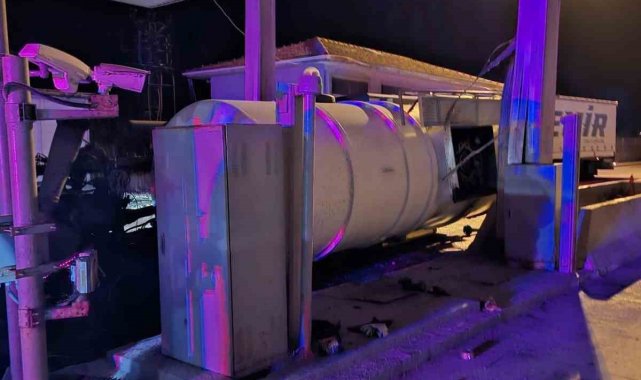 Bolu'da tanker gişelere çarpıp devrildi: 1 yaralı