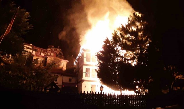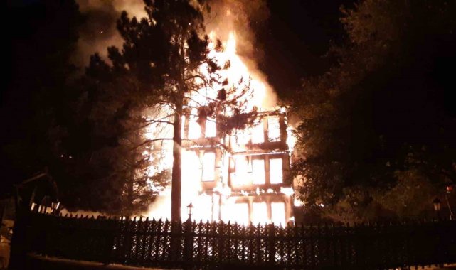 Bolu'da tarihi Keyvanlar Konağı kül oldu: Alevler geceyi aydınlattı