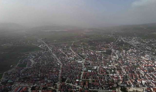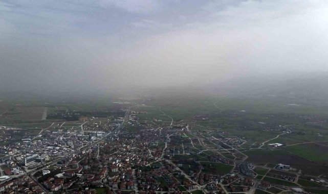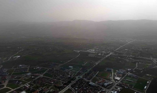 Bolu'da etkili olan toz taşınımı nedeniyle kentin üzerini gri bir tabaka kapladı. Özellikle yüksek kesimlerde yoğunlaşan toz bulutları havadan görüntülendi.