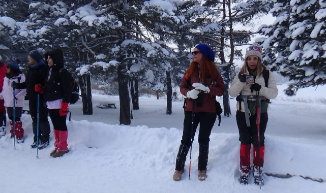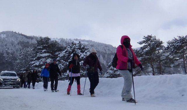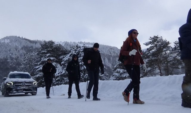 Bolu'da trekking ekibi kar kalınlığının 50 santimetreyi aştığı 12 kilometrelik orman parkurunda yürüdü.