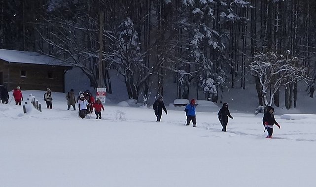 Bolu'da geçtiğimiz 5 gün boyunca yoğun kar yağışı etkili oldu. Kar yağışının etkili olduğu Abant Gölü Milli Parkı bölgesinde 30 trekking ekibi doğa yürüyüşü düzenledi. Kar yağışına aldırış etmeden 790 rakımda yürüyüşe başlayan grup kalan 12 kilometrelik parkuru kar kalınlığının 50 santimetreye ulaştığı bölgede gerçekleştirdi. Yaklaşık 4,5 saat süren yürüyüşte doğaseverler unutulmaz anlar yaşadı. Grup Başkanı Uğur Midiliç, "Mudurnu yolu üzerinden ekibimizle Abant Gölü kenarından indik. 8 kilometrelik göl çevresinde yürüdükten sonra yürüyüşü tamamlayacağız. Doğada olmak her hafta başka bir yerlerde yürüyüş yapmak güzel. Doğayı seviyoruz" dedi.