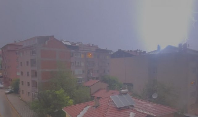 Bolu'da etkili olan sağanak yağışla birlikte düşen yıldırımlar korku filmlerini aratmadı.
