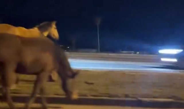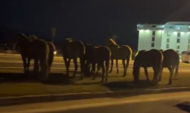 Refüjdeki çimleri yiyerek karınlarını doyuran atlar, zaman zaman yola yaklaşarak trafikte tehlike oluşturdu. Güzergahı kullanan sürücüler, atlara çarpmamak için hızlarını düşürerek kontrollü şekilde ilerledi. Bir süre orta refüjde otlayan atlar, daha sonra bölgeden uzaklaşarak gözden kayboldu.