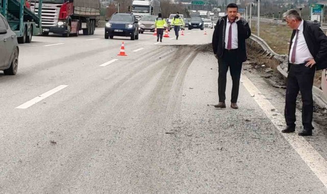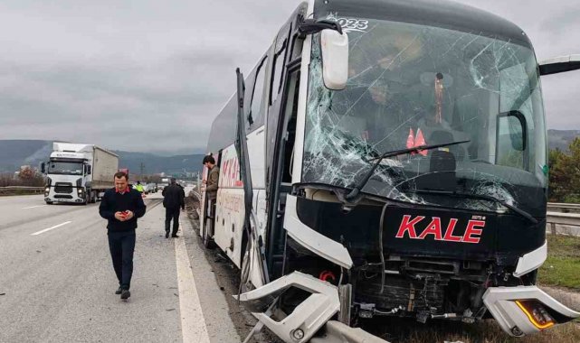 Anadolu Otoyolu'nun Bolu geçişinde tırla çarpışan yolcu otobüsü refüje savruldu. Kazada yaralanan olmazken, yolcu otobüsü büyük çapta hasar aldı.