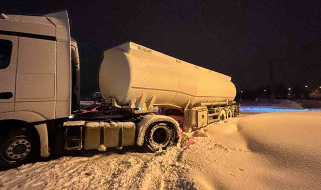 Bolu'da etkisini artıran yoğun kar yağışı nedeniyle Abant Gişeleri bağlantı yolunda bir tır kontrolden çıkarak şarampole kaydı. Kar kalınlığının 40 santimetreyi aştığı Bolu Dağı güzergahı, ağır tonajlı araçların geçişine kapatıldı.