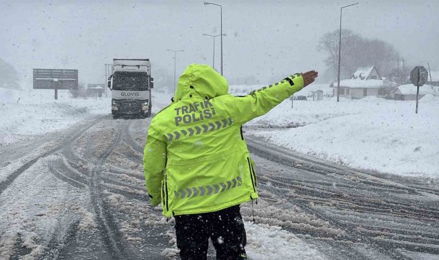 Bolu'da gün boyu aralıklarla devam eden ve öğle saatlerinde etkisini artıran kar yağışı, ulaşımda aksamalara neden oldu. Özellikle Türkiye'nin en önemli geçiş güzergahlarından biri olan D-100 kara yolunun Bolu Dağı kesiminde yoğun kar yağışı ve buzlanma riski sebebiyle tedbirler artırıldı. Kar yağışının şiddetini artırması üzerine harekete geçen İl Emniyet Müdürlüğü trafik ekipleri, D-100 kara yolunun İstanbul istikametini tır ve kamyon geçişlerine kapattı. Elmalık Kavşağı mevkiinde kontrol noktası oluşturan ekipler, ağır tonajlı araçların D-100 kara yolunu kullanmasına izin vermiyor. Sürücüler, ekipler tarafından TEM Otoyolu'na yönlendiriliyor.