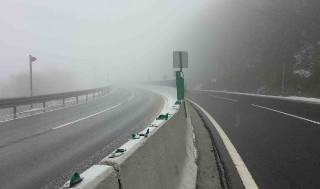 DÜZCE (İHA) – Türkiye'nin en önemli geçiş güzergahlarından olan Bolu Dağı'nda hafif kar yağışı ve sis etkili oluyor. Sis nedeniyle görüş mesafesi 20 metreye kadar düştü.