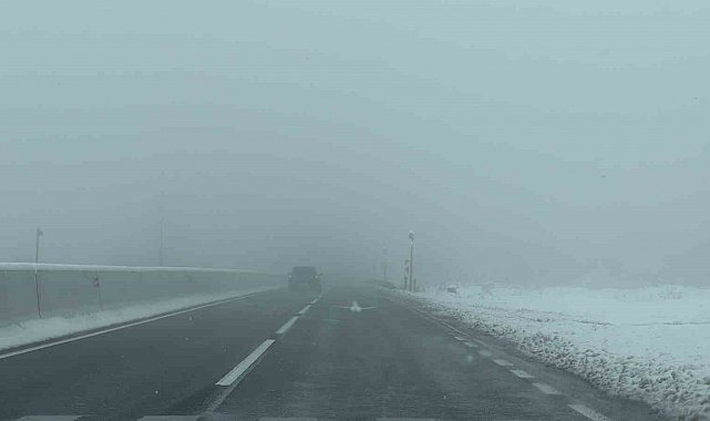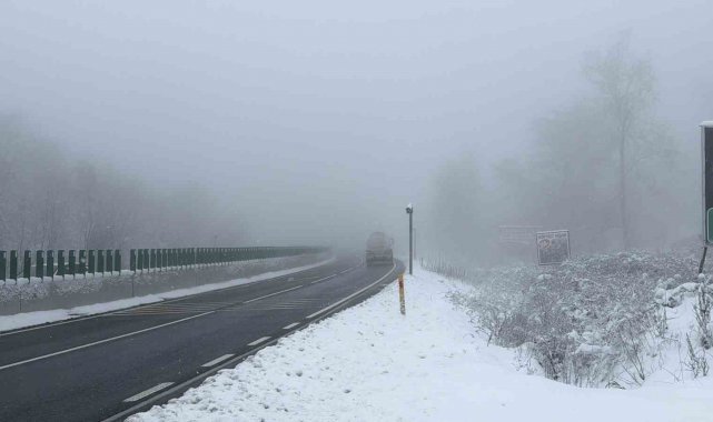 Türkiye'nin en önemli geçiş güzergahlarından Bolu Dağı'nın Düzce geçişinde yoğun sis ve kar etkili oluyor.