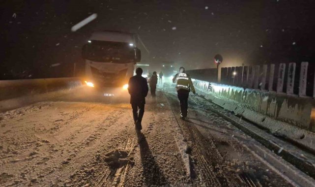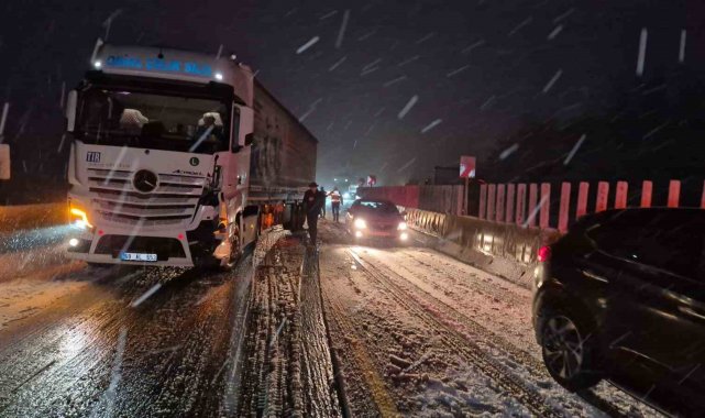 Türkiye'nin en önemli geçiş güzergahlarından olan Bolu Dağı'nda kar yağışı etkili oldu. Yollar bir anda beyaza bürünürken her iki istikamette de bazı tırlar yolda kaldı. Kar kalınlığının 5 santimetreye ulaştığı bölgede tırlar yolda kalınca, küçük araçlarda polis ekiplerince geri döndürüldü. Bölge trafik ekiplerinin çalışmalarıyla küçük araçların tamamı yoldan gönderilirken, büyük araçların geçişi ise her iki istikamette de durduruldu.